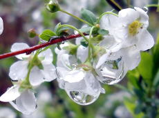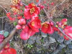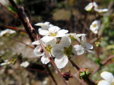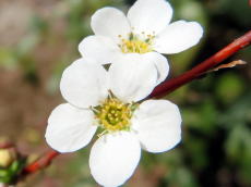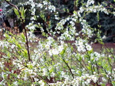 ユキヤナギが小さくて可憐な白い花を咲かせ始めているのを見かけて、足を休める序に暫し観賞を